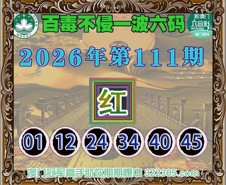 111期:《百毒不侵》 🧩一波六码🧩【红波】开:马01准