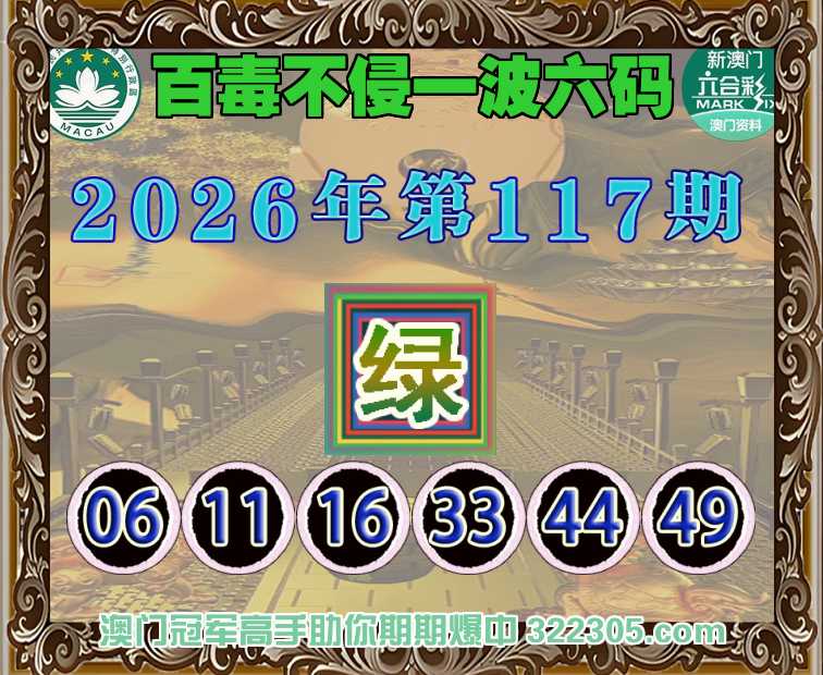 117期:《百毒不侵》 🧩一波六码🧩【绿波】开:兔16准