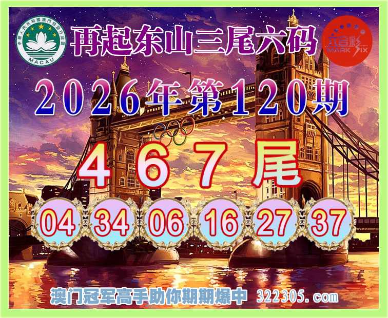 120期:《再起东山》 ♣️三尾六码♣️【467尾】开:00准