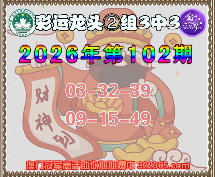 102期: 彩运龙头 ⌚②组3中3⌚