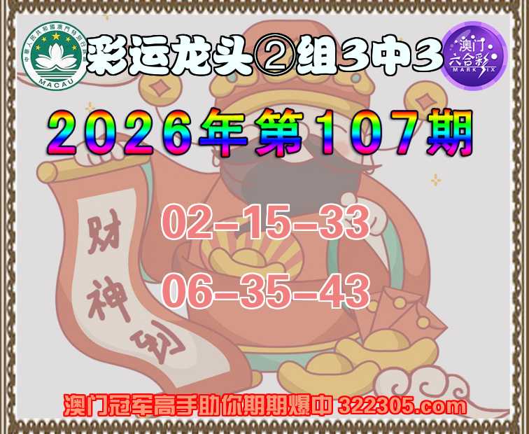 107期: 彩运龙头 ⌚②组3中3⌚
