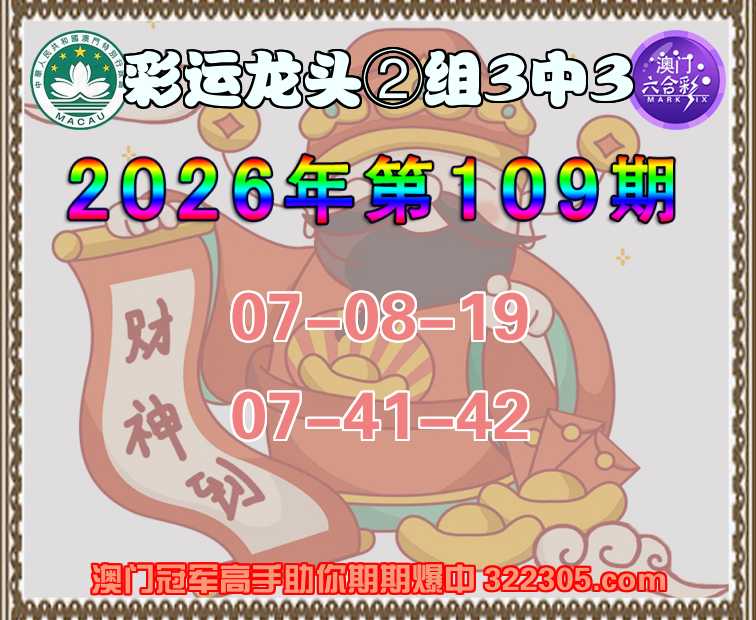109期: 彩运龙头 ⌚②组3中3⌚