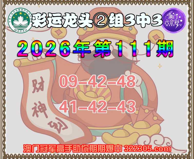 111期: 彩运龙头 ⌚②组3中3⌚