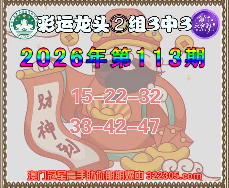 113期: 彩运龙头 ⌚②组3中3⌚