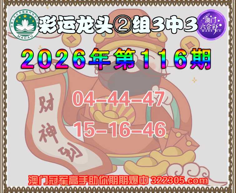 116期: 彩运龙头 ⌚②组3中3⌚