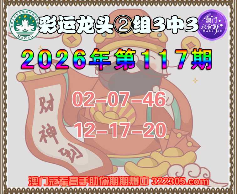 117期: 彩运龙头 ⌚②组3中3⌚