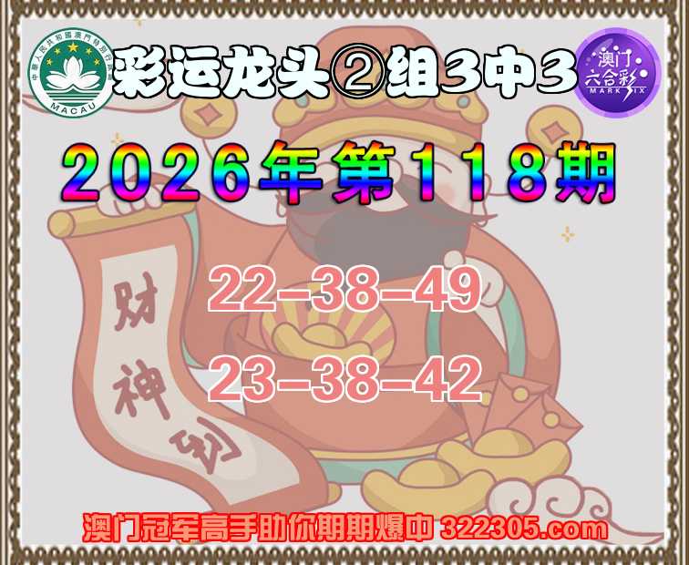 118期: 彩运龙头 ⌚②组3中3⌚