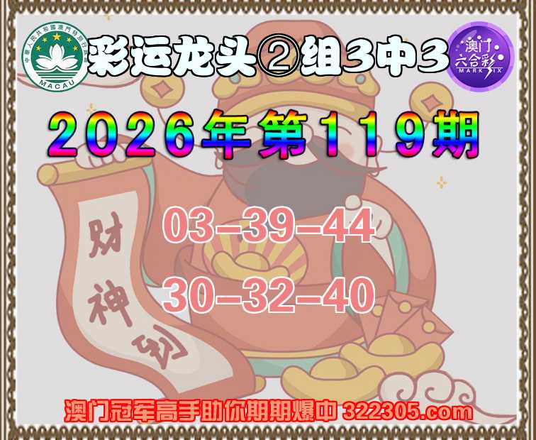 119期: 彩运龙头 ⌚②组3中3⌚
