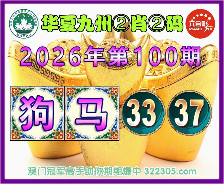 100期:【华夏九州】 🎖️②肖②码🎖️【狗马】【33.37】开:狗33准