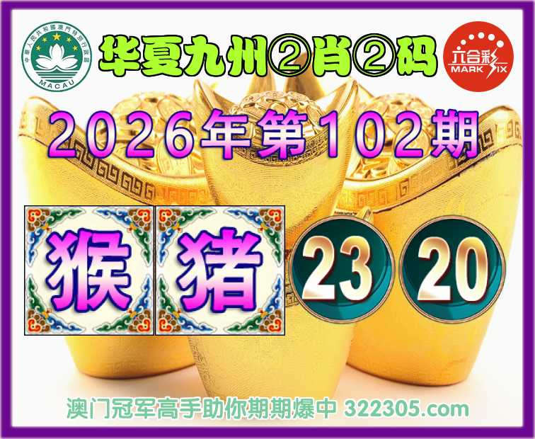 102期:【华夏九州】 🎖️②肖②码🎖️【猴猪】【23.20】开:猪20准