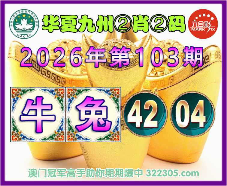 103期:【华夏九州】 🎖️②肖②码🎖️【牛兔】【42.04】开:牛06准