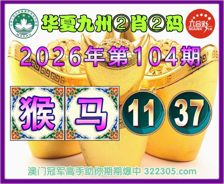 104期:【华夏九州】 🎖️②肖②码🎖️【猴马】【11.37】开:马01准