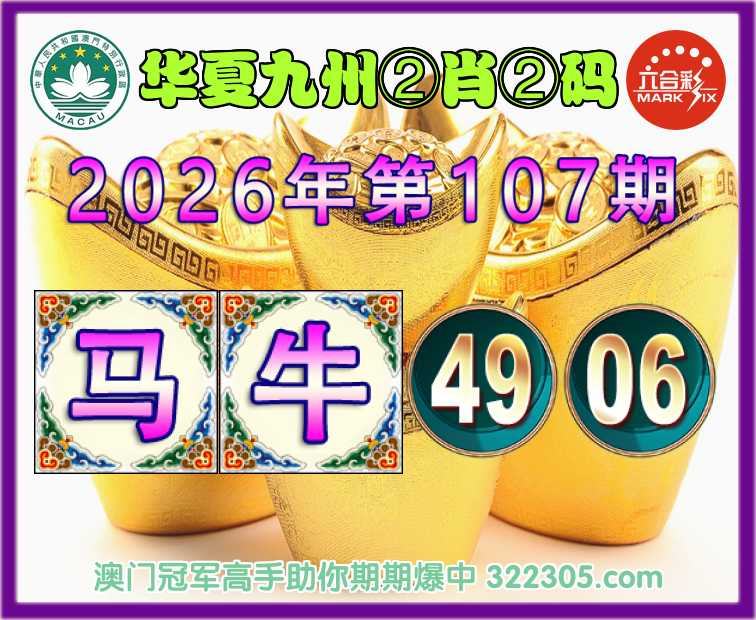 107期:【华夏九州】 🎖️②肖②码🎖️【马牛】【49.06】开:马49准