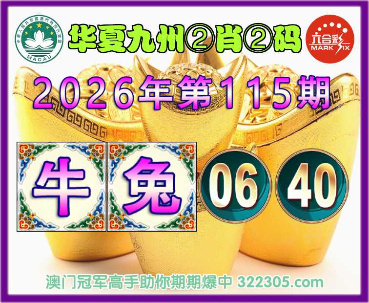 115期:【华夏九州】 🎖️②肖②码🎖️【牛兔】【06.40】开:兔04准