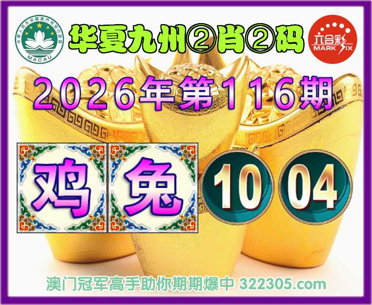 116期:【华夏九州】 🎖️②肖②码🎖️【鸡兔】【10.04】开:鸡22准