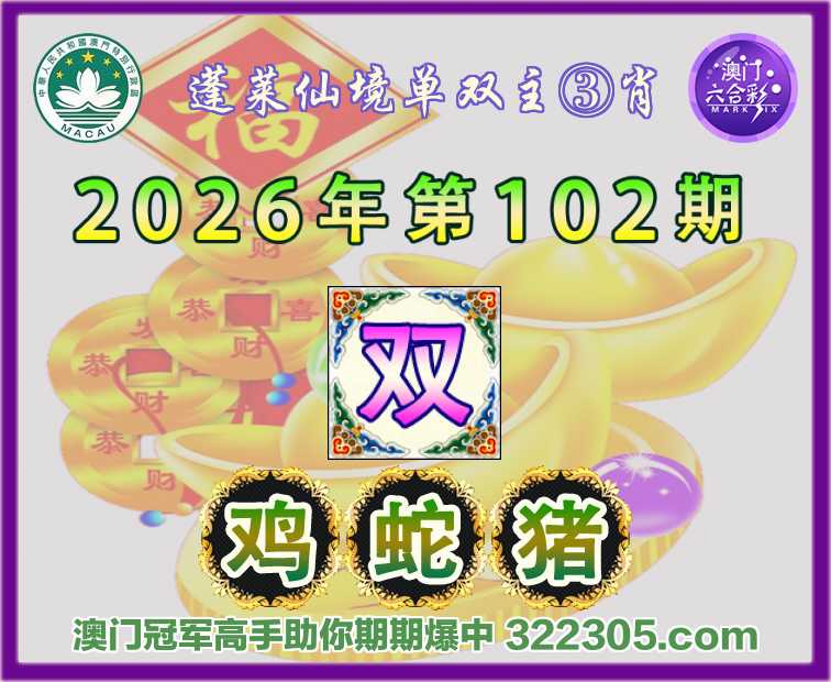 102期:〖蓬莱仙境〗 🀄单双主③肖🀄【双-鸡蛇猪】开:猪20准