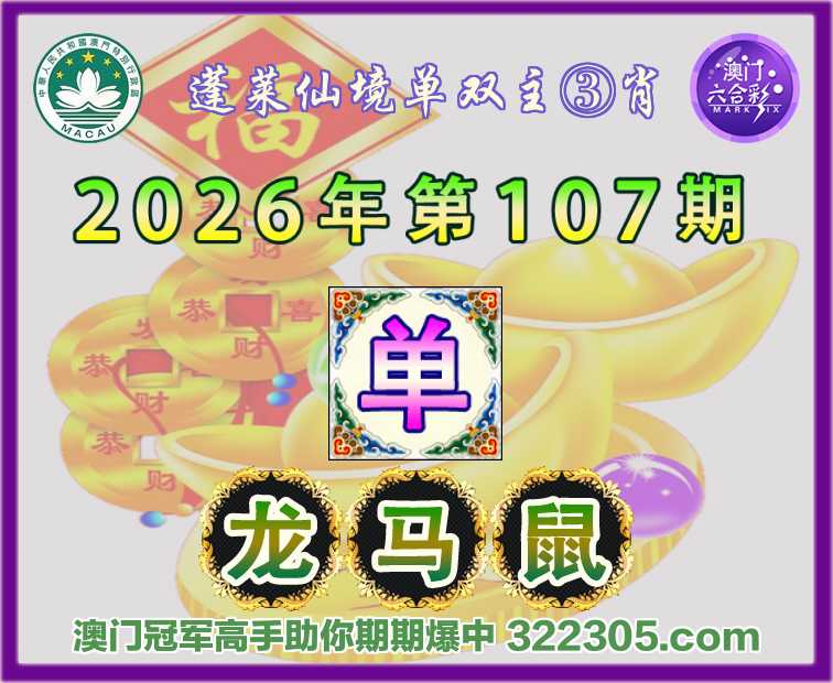 107期:〖蓬莱仙境〗 🀄单双主③肖🀄【单-龙马鼠】开:马49准