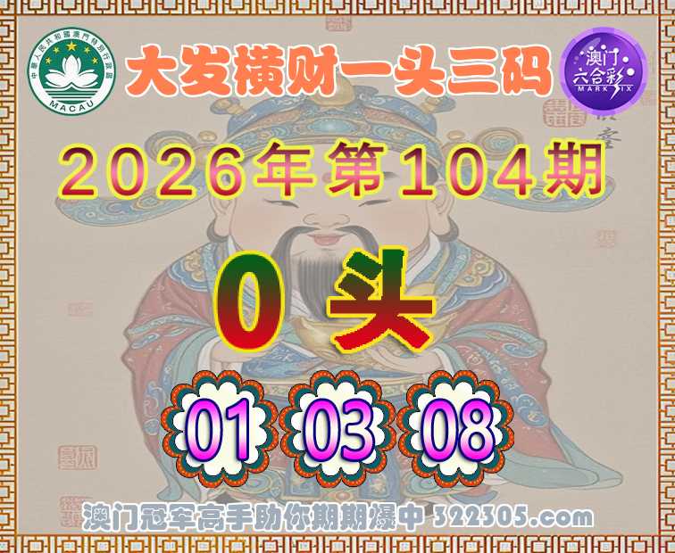 104期:〖大发横财〗 🎆一头三码🎆【0头主:01.03.08】开:马01准