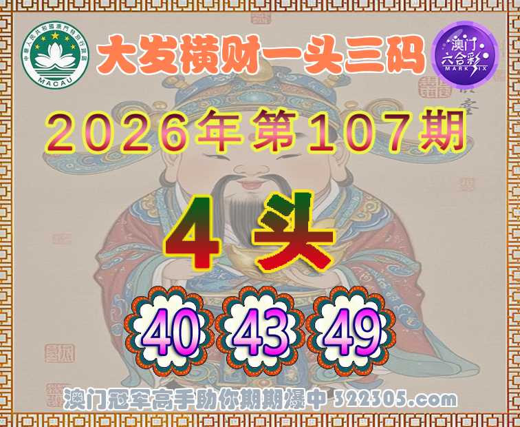 107期:〖大发横财〗 🎆一头三码🎆【4头主:40.43.49】开:马49准