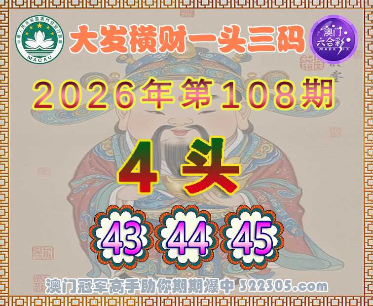 108期:〖大发横财〗 🎆一头三码🎆【4头主:43.44.45】开:狗45准