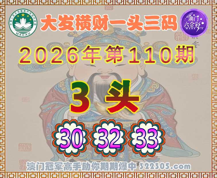 110期:〖大发横财〗 🎆一头三码🎆【3头主:30.32.33】开:牛30准