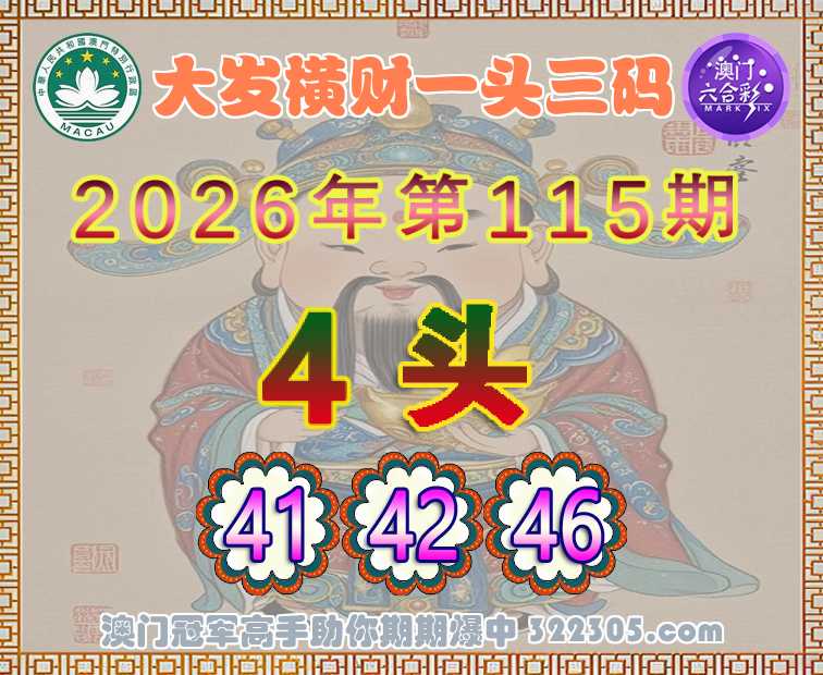 115期:〖大发横财〗 🎆一头三码🎆【4头主:41.42.46】开:兔04错