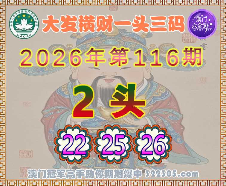 116期:〖大发横财〗 🎆一头三码🎆【2头主:22.25.26】开:鸡22准