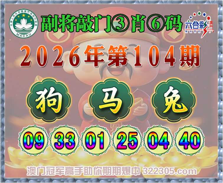 104期:【副将敲门】 🥽③肖⑥码🥽【狗马兔】开:马01准