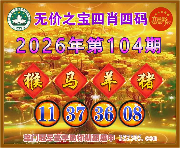 104期:🚲〖无价之宝〗🚲四肖四码🚲【猴马羊猪】【11.37.36.08】开:马01准