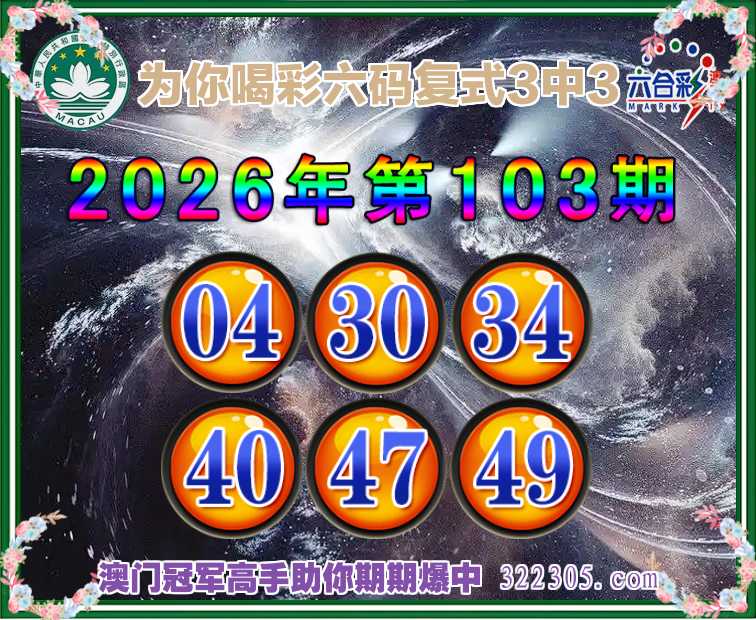 103期:〖为你喝彩〗 👩🌾六码复式3中3👩🌾