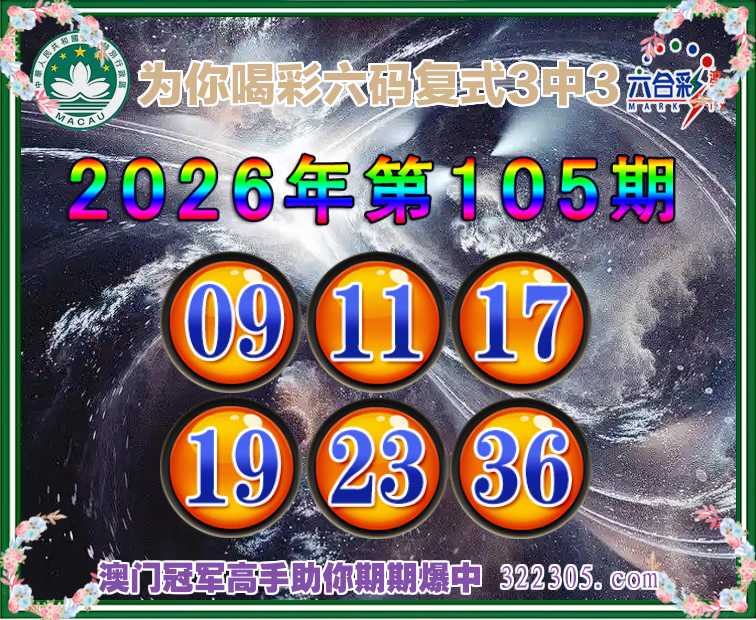 105期:〖为你喝彩〗 👩🌾六码复式3中3👩🌾