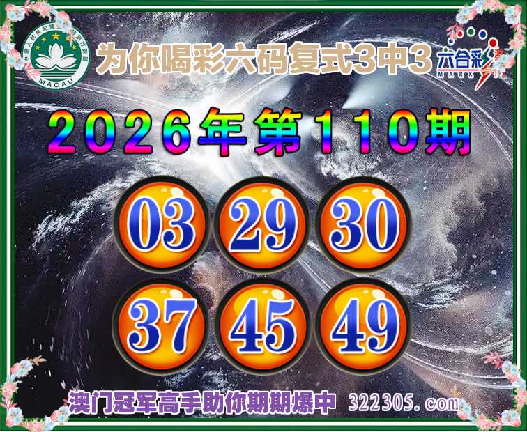 110期:〖为你喝彩〗 👩🌾六码复式3中3👩🌾