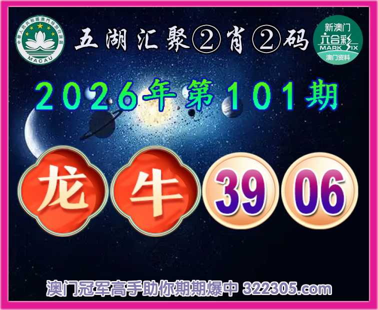101期:《五湖汇聚》 ♥️②肖②码♥️【龙牛】【39.06】开:龙39准