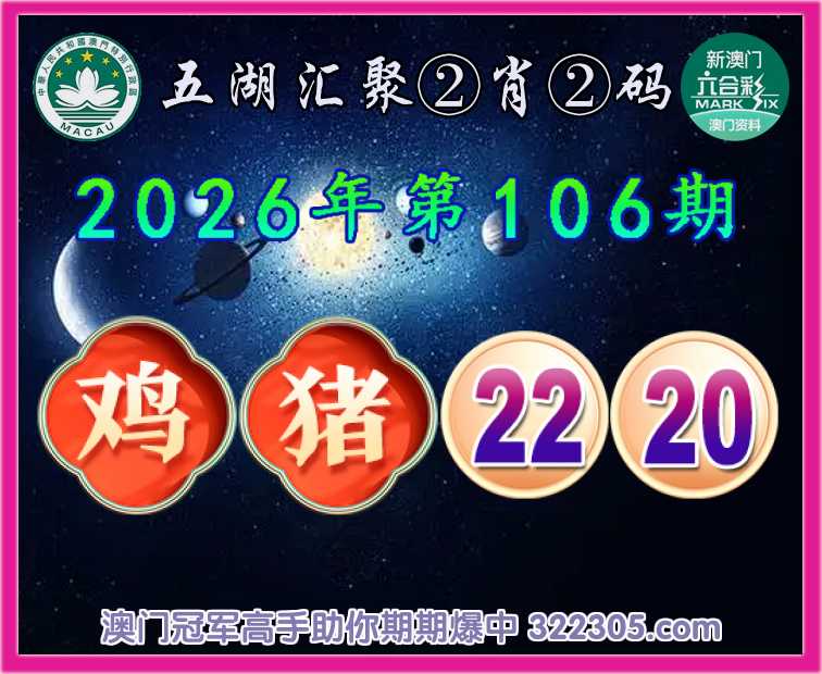 106期:《五湖汇聚》 ♥️②肖②码♥️【鸡猪】【22.20】开:鸡22准