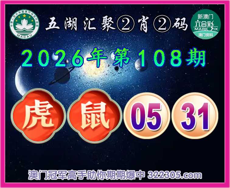 108期:《五湖汇聚》 ♥️②肖②码♥️【虎鼠】【05.31】开:狗45错