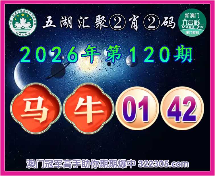 120期:《五湖汇聚》 ♥️②肖②码♥️【马牛】【01.42】开:牛06准