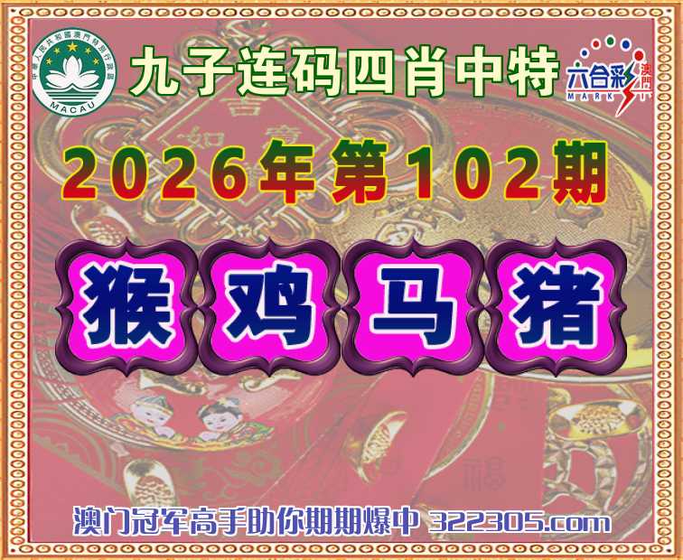 102期:【九子连码】 🐁四肖中特🐁【猴.鸡.马.猪】开:猪20准