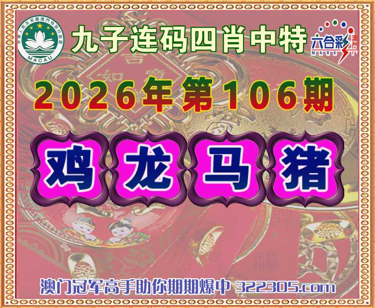 106期:【九子连码】 🐁四肖中特🐁【鸡.龙.马.猪】开:鸡22准
