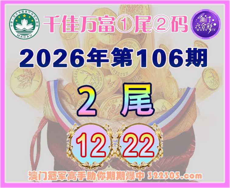 106期:『千佳万富』 🥉①尾②码🥉【2尾主:12.22】开:22准