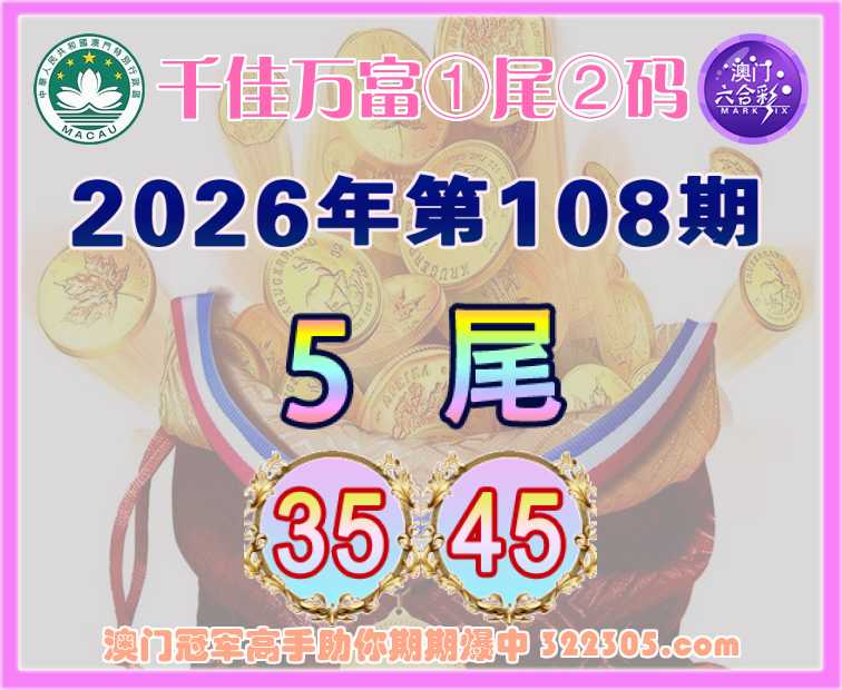 108期:『千佳万富』 🥉①尾②码🥉【5尾主:35.45】开:45准