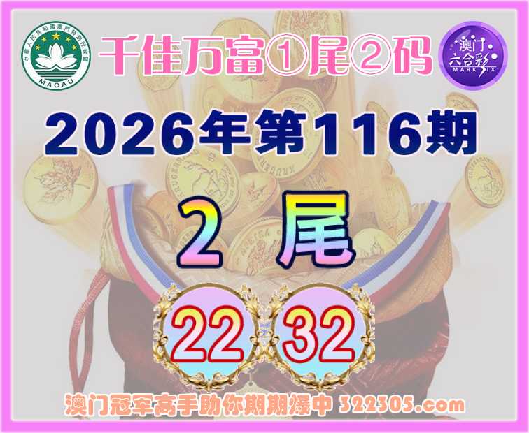 116期:『千佳万富』 🥉①尾②码🥉【2尾主:22.32】开:22准