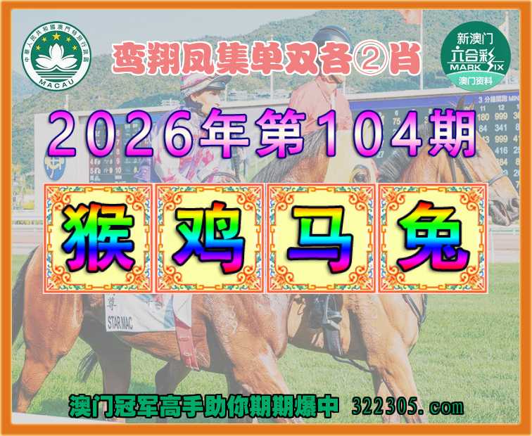 104期: 😜《鸾翔凤集》 😜单双各②肖😜【猴.鸡.马.兔】开:马01准